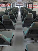 This model also includes a restroom for convenience during long trips. Comfortable gray cloth seats with green on the outsite of the chair for a visual accent. Seats have a tray on the back of them, to provide a writing, reading or even eating space for your passenger's use. The bus also has foot and arm rests, as well as a light and an adjustable air over the seat for comfort.